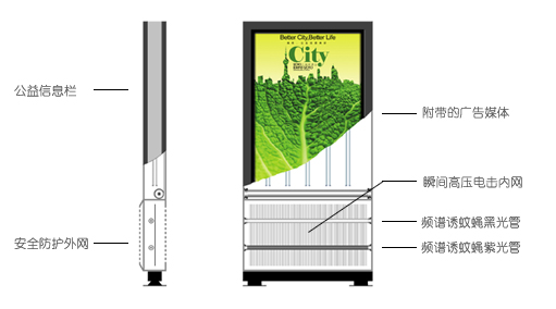 c)户外专用灭蚊灯箱,有效捕杀蚊蝇,减少疾病传播源
