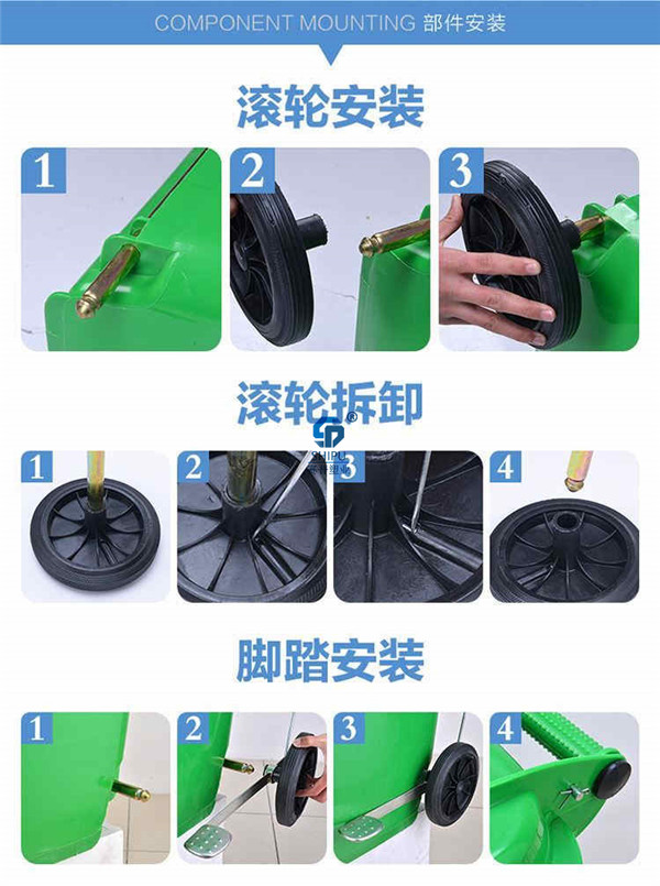 2.产品无味,无钉无刺,耐酸碱,防霉变,防潮,防蛀,无须修理,可循环利用。符合国际环卫设备发展趋势,具有抗强压,抗冲击,密封式存放、方便移动等特点。