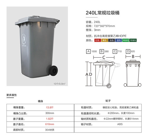 - 产品型号:240L塑料垃圾桶