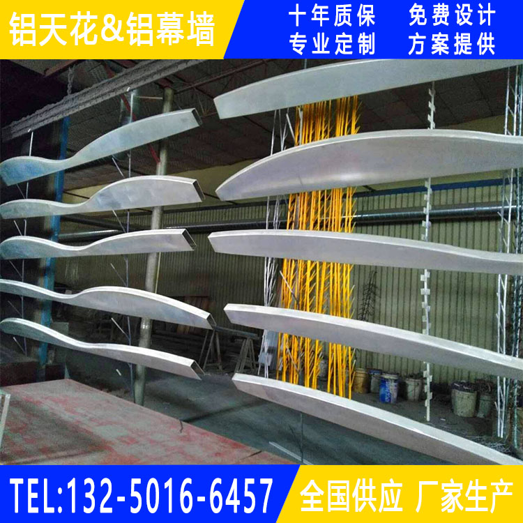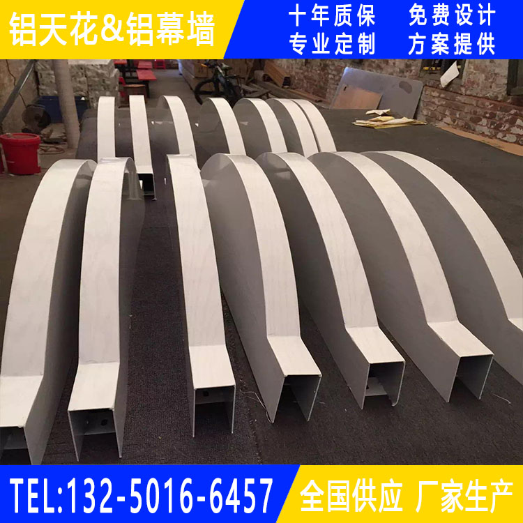 弧形造型铝方通,这里要说的是一种底面弧和侧面弧结合的一种波浪造型铝方通,底面弧度,主要跟着侧面的线条走向,而侧面弧,主要是通过进口数控雕刻开料得到,底面料和侧面双件料通过点焊定型,全焊固定得到,是目前市场上最受欢迎的吊顶装饰材料之一,近年来最热门的吊顶材料!弧形铝方通生产流程(进口数控雕刻机开料-加工-打磨-水洗-德国进口喷涂线表面喷涂);还有一种是滚弧波浪形铝方通这种是用铝方管上拉弯机,进行滚弧成想要的造型!
