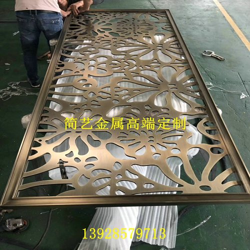 不锈钢花格屏风餐厅玄关古铜拉丝办公创意北欧会馆装饰