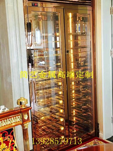 常温恒温酒柜厂家定制玫瑰金不锈钢酒柜酒架