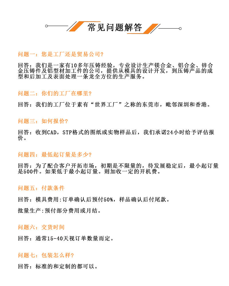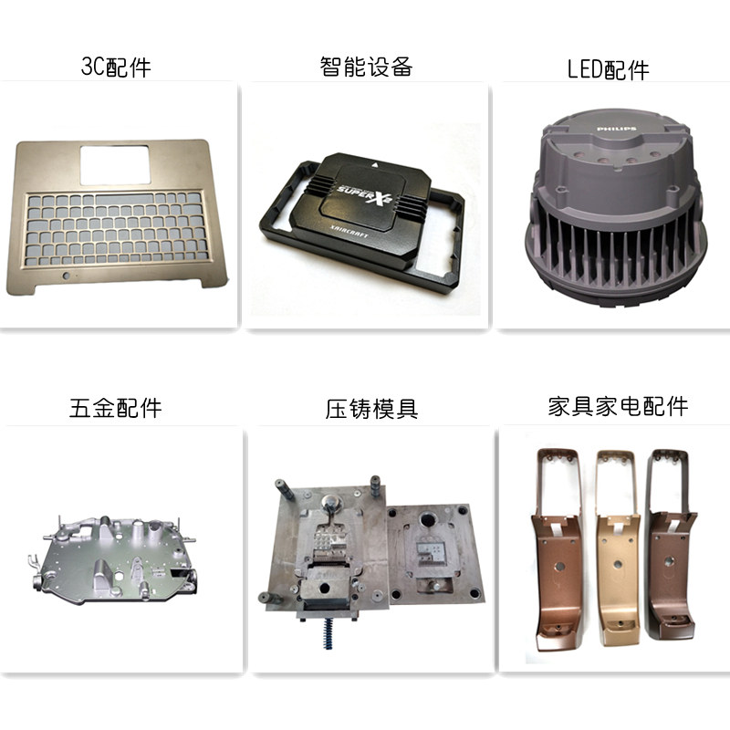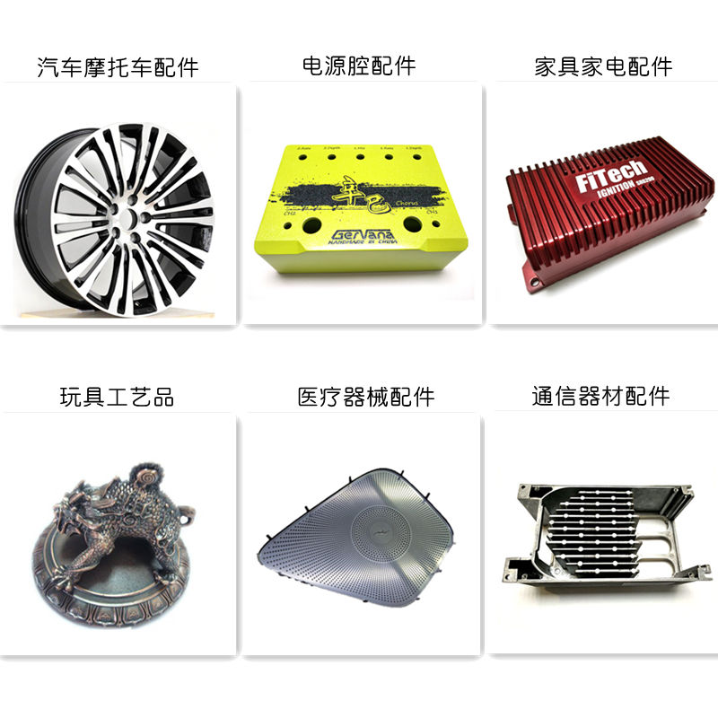 汽车部件和配件,泵和阀门零件和配件,食品机械零件,机械零件,工业锁,五金工具,高速铁路配件,建筑五金件,船舶配件和船舶五金,石油机械,热处理设备,农业机械,家具部件,LED照明部件,其他工业金属压铸件 |