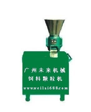 ③饲喂方便,利用率高,便于控制饲喂量,节约饲料,干净卫生。尤其是养鱼,由于颗粒饲料在水中溶解很慢,不会被泥沙淹没,可减该产品机型吸取了国内外颗粒机之精华,为节能新产品。过去一般将饲料加工成粉末后饲喂,存在饲喂不方便,适口性差,家畜挑食,利用率低等缺陷。随着新型小型颗粒饲料机械的问世及普及,现在已可以方便地将粉末饲料加工成颗粒饲料。可采用照明电为动力,在压辊的挤压下从模孔中压出制粒,可以很方便地调整颗粒长短,其结构简单,占地面积小,噪音低,220伏单相电即可操作,适用缺少三相电条件的小型养殖户使用。