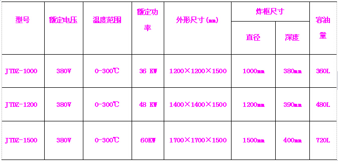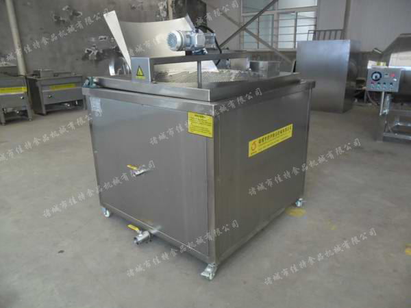 新研制的带有自动搅拌的油炸机可炸制锅巴、沙琪玛、乡巴佬、休闲食品、鱼类、肉类、禽类、水产、肉饼、豆制品、猪蹄、牛肉、鸡腿、丸子各种挂浆挂糊、上粉、上浆等客户的批量生产。该设备自动化程度高,主要是通过限位控制、分区控温、科学利用植物油与动物油的比重关系使所炸肉类食品浸出的动物油自然沉入植物油下层,这样中上层工作油始终保持纯净,所炸食物不但色、香、味俱佳、外观干净美观、且提高了产品品质,延长货架期。