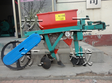 7:培土器有左,右分土铲。安装在耘锄架左,右滑块上,实现双行培土。滑块左,右互换,能够把分土铲前角靠在一起,实现平地开沟。分土铲左,右互换,实现平地扶垄。斜支板的调整孔来调节分土铲深浅及分土,培土多少。点播原种,直播毛仔,一次成功,每小时1~1.5亩,设计合理不存在缺陷。更换楼心,可以精播棉花,玉米,花生,大豆,向日葵。调整手柄播种量大,小随意可调。