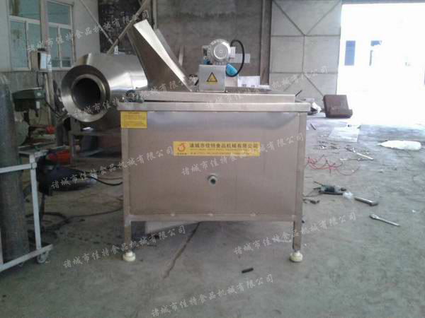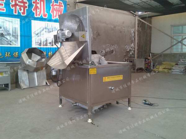 油炸机生产设备利用油、水、动物油的比重不同的原理,油和水混合之后自动分层,油在上层受热后炸制食品,在此过程中的食物残渣下沉至水中,可及时清除,不会因通常用锅炸时沉至锅底变成焦煳状而使油变黑。炸制过程中产生的动物油也会沉下并清除,这是油保持纯净的原因之一。其次,由于有效的控制了油的温度(只在几度范围内波动),有效缓解了炸油的氧化程序,即油不易煳。