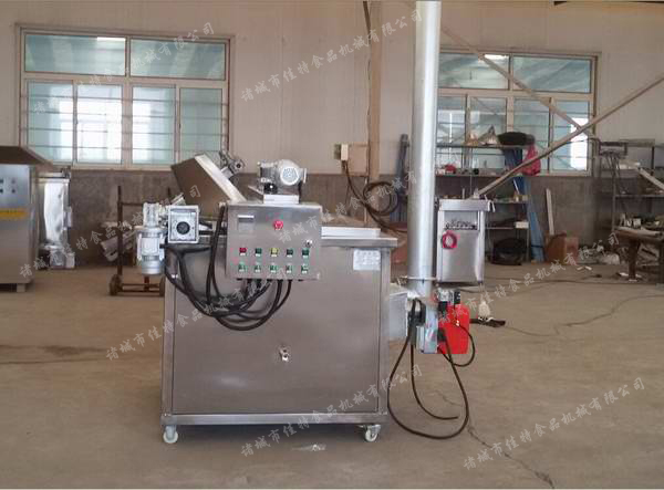 1、该设备采用独特的水油混合油炸工艺,燃气、蒸气可同时使用,降低了生产成本,节约能源。