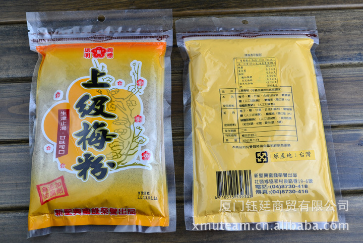 我们销售的梅粉全部产自台湾。台湾梅子的梅品是全亚太地区最好的,其梅制品也非常丰富,不但行销岛内,还长期专供出口。