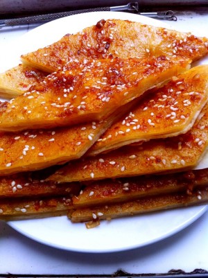 土家酱香饼,又称土家香酱饼,湖北酱香饼,恩施酱香饼,武汉酱香饼,简称酱香饼或香酱饼。它是湖北恩施长阳土家族一种特有的小吃。此饼以香、甜、辣、脆为主要特点,它香中有香,甜中带绵,辣而不燥,外脆里软。吃着它,完全是一种美食享受