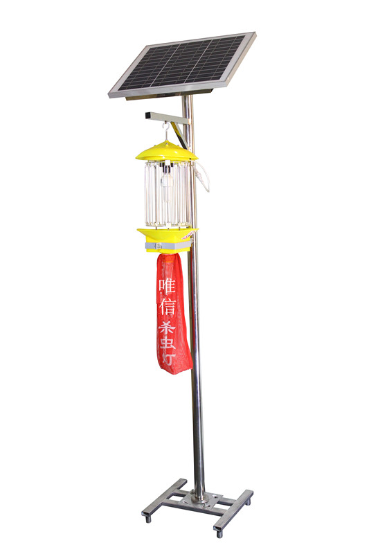 杀虫灯是利用害虫趋光性进行诱杀的一种物理防治方法。频振式杀虫灯是利用害虫较强的趋光、趋波、趋色、趋性信息的特性,将光的波长、波段、波的频率设定在特定范围内,近距离用光、远距离用波,加以诱到的害虫本身产生的性信息引诱成虫扑灯,灯外配以频振式高压电网触杀,使害虫落入灯下的接虫袋内,达到杀灭害虫的目的。广泛应用与农业、林业、蔬菜、仓储、茶叶、烟草、园林、景区、游园、公园、学校、企事业单位、大棚、葡萄园、水产养殖、畜牧养殖等。