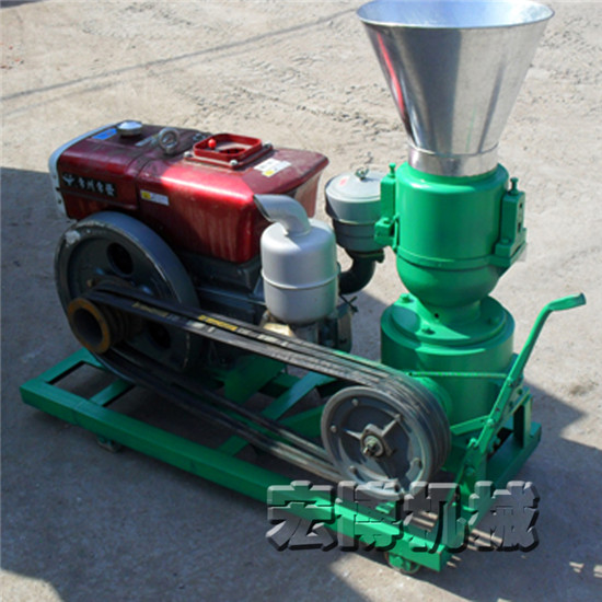 取10-20斤已混合好的粉饲料,加入5%-10食用油调匀,并用手搓开油块,先加入饲料,启动机器后用扳手调整压辊螺栓,待正常出料为止。带油的饲料在机器里面反复3-5次后,在逐渐加入干料(带油的饲料挤压完不能用来喂兔子。新机器磨合一遍后,以后不需再磨合)。