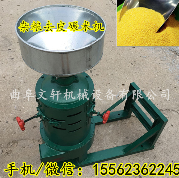 主要用来加工谷子碾米和高粱的去皮成米,以及玉米、小麦、大麦、绿豆、大豆等五谷杂粮及中药地肤子、薏米的脱皮加工,内有砂轮、筛片和磨米刀,在机座下部设有风扇,在机身上均布有排糠通道,其特殊之处是:谷物脱皮机主轴是由长轴和短轴相互插接而成,在长轴与短轴的插接间隙处设有轴承,长轴和短轴与电机分别连接且设在长轴上的带轮大于设在短轴上的带轮,风扇安装在短轴下部,砂轮为叠加安装在长轴上。优点是:可实现风扇与砂轮的差速旋转,提高排糠量,即使长时间工作也不会造成糠皮的堆积,降低了谷物破碎率,加工后的谷物中不会掺杂糠皮,谷物脱皮后无需进行筛糠处理,大大提高了谷物脱净率和加工效率,特别是玉米经过脱去了坚硬的皮壳和胚芽部分,改善了玉米的食用口感效果,扩大了玉米的应用范围,脱皮后玉米磨粉加工玉米面条十分畅销。