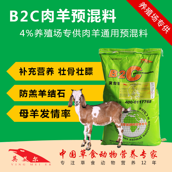 北京英美尔是一家专业化从事草食动物饲料营养研究的高新技术企业,针对肉羊育肥需要研制生产的肉羊专用预混料,将肉羊生长所需的营养物质、促进羊催肥的添加剂辅以未知生长因子按最佳比例配制成预混料,无需添加任何其它药物,使用本品可以在不增加精粗料比例的前提下,在短期内迅速达到增加产肉量、改善肉质、生产优质毛皮的效果,是养羊场省工、省料、提高经济效益的最佳选择。