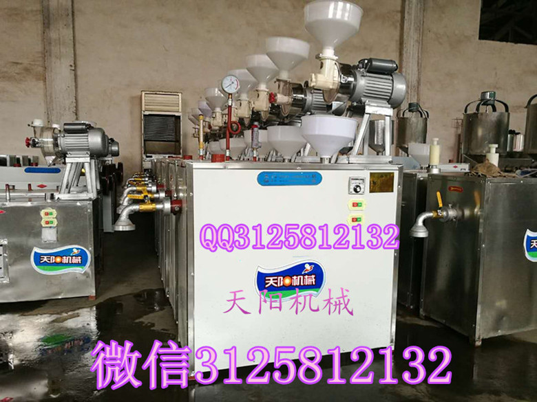 天阳槐花粉机生产时,首先要把机器冲洗干净,把水箱里加满水,启动加热装置升温至所需温度后,开动机器,把槐花和大米磨成的浆倒入机器内,通过热水蒸煮把米浆熟化,然后再经成型模片推出成型。成型槐花粉色泽好,晶莹剔透,口感劲道滑爽。