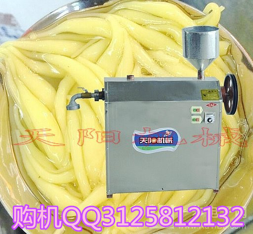 天阳槐花粉机生产时,首先要把机器冲洗干净,把水箱里加满水,启动加热装置升温至所需温度后,开动机器,把槐花和大米磨成的浆倒入机器内,通过热水蒸煮把米浆熟化,然后再经成型模片推出成型。成型槐花粉色泽好,晶莹剔透,口感劲道滑爽。