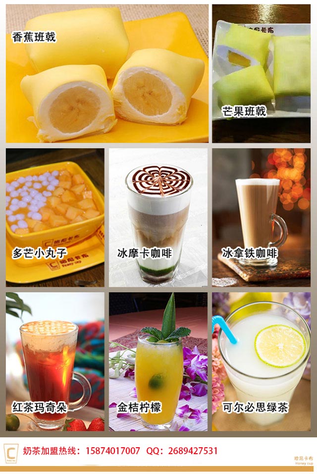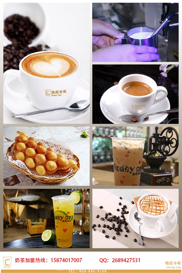 广州尼布餐饮管理有限公司旗下哈尼卡布产品经过不断的探索创新,专注定位奶茶和咖啡之间开发出了时尚饮品、美味甜品、醇香咖啡等等产品大类,更多产品还在陆续研发中。公司总部凭借与台湾的天然联系,全面采用优等植脂末和进口优质奶粉、上等红茶以及台湾茶世家多年传承的优化比例配方精心调配而成,丝滑细腻,哈尼卡布潮饮,卖点十足。