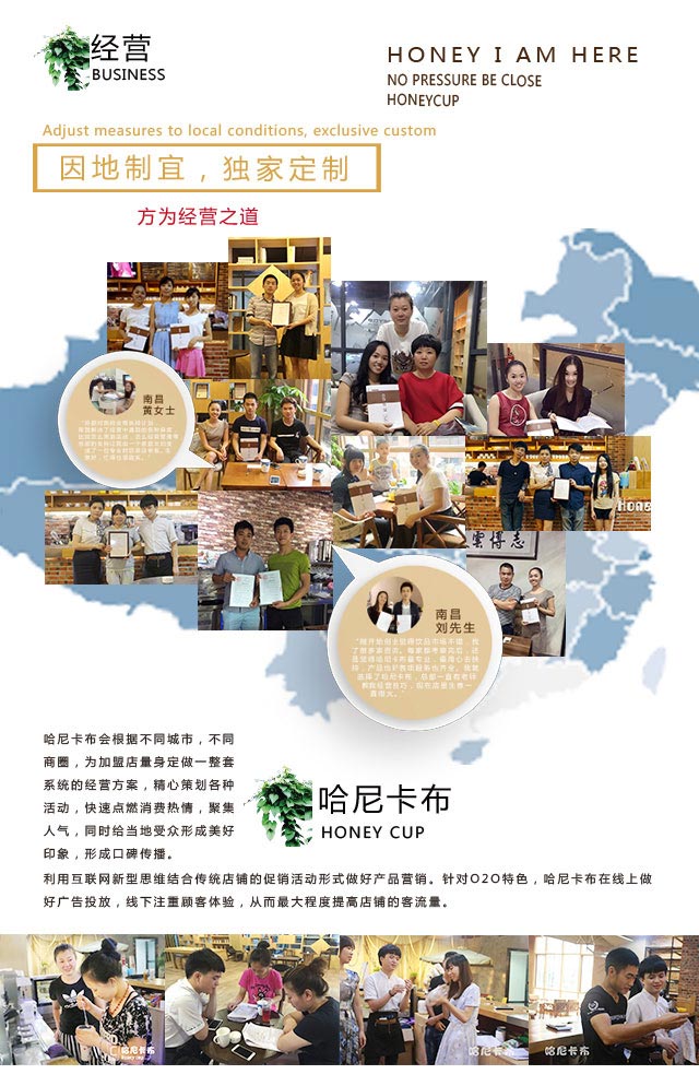 哈尼卡布咖啡饮品是国内高质的咖啡加盟品牌,致力于打造全国顶尖的咖啡连锁加盟企业。细节决定成败,哈尼卡布咖啡饮品注重发展中的每一个细节。把这种细节融入到服务与出品中,始终使顾客获得最好的就餐体验。如果你想拥有这样一家咖啡奶茶加盟店? 如果你想拥有一家优雅小资情调的咖啡奶茶品牌店?那么哈尼卡布咖啡饮品,欢迎您的加入。