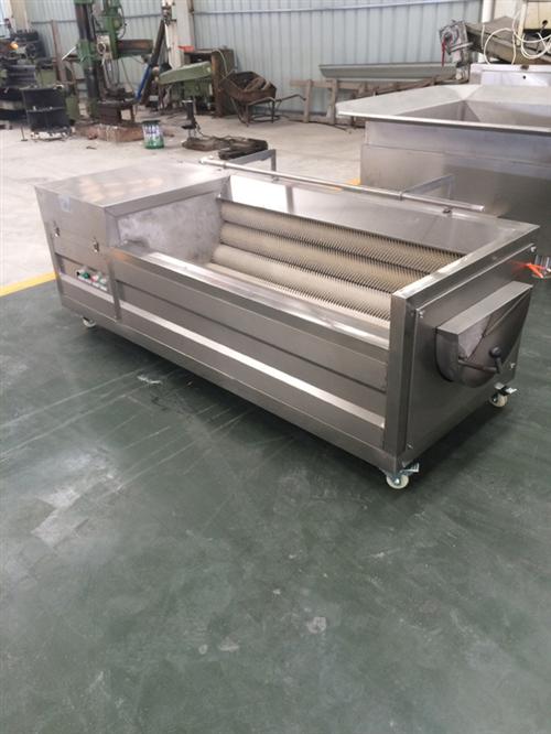 2、洗涤箱内有六只辊刷,电动机带动辊刷旋转,可迅速对根茎菜进行洗涤和去污处理。用户可根据不同果蔬的洗涤工艺要求,选订不同硬度的辊刷,以得到的洗涤效果和更少的损耗量。