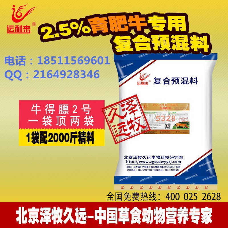 牦牛是一种作为肉奶兼用的野生牛种,其毛长过膝,耐寒耐苦,适应高寒地区氧气稀薄的生态条件,是中国青藏高原的特有畜种,所产奶、肉、皮、毛,是当地牧民的重要生活资源。近年来牦牛的驯化程度不断提高,所以家养牤牛的数量也在不断增加。牦牛体格矮小,生长速度缓慢,所以较一般的肉牛生长速度缓慢。要想提高牦牛的生长发育速度,还需要进一步的驯化,就目前来看给牦牛提供充足均衡的营养是提高其生产性能的重要措施。北京泽牧久远生物科技研究、中国农业大学及中国农科院的专家学者精心研发的“牛得膘”系列预混料同样适用于牦牛的育肥,要特点注意由于其骨架较小所以一定要在长骨期使用“牛得膘1号”预混料,本产品是拉架子专用,良好的骨架体型是育肥的基础,拉好架子后使用“牛得膘2号”催肥饲料,我们会根据体重为您设计配方,配方较为复杂需来电详询:18511569601。