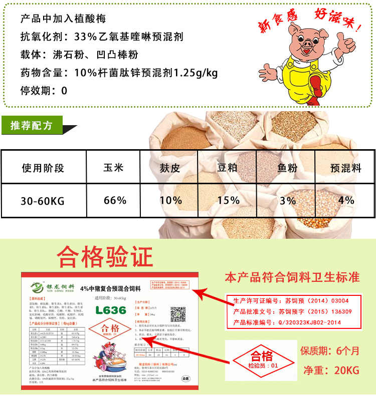 产品特点:本品强化了B族维生素,合理的钙磷比例,培养中猪良好体型;高效的氨基酸和复合酶制