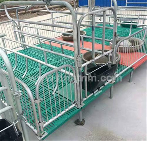 母猪产床是一种综合猪栏,它是供母猪分娩和哺育仔猪的场所,采用高床饲养,网上产仔,以减少母猪、的疾病,提高仔猪的成活率。常用的网上形式有钢编网、钢塑网、全铸铁网、铁塑混合网。当前的国际主流是母猪铸铁,仔猪塑料的混合网形式。