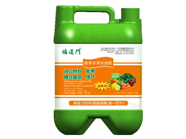 福进门膨果专用肥是根据作物膨果期对养分需求特征特别研发生产的,高钾配方,还有配比合理的氮磷以及螯合态微量元素、有机质,有效促进果实的快速膨大、着色、增甜,还特别添加多肽霉,有效的提高产品效果,效果更显著。