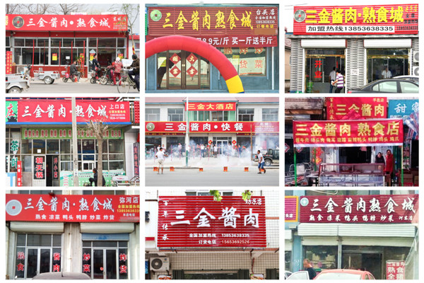 潍坊宋氏三金餐饮管理有限公司是寿光市老字号正规熟食加工企业,三十余味纯??绿色中草药绝密配方,传统的酱肉技术与中草药的完美结合,没有任何香精,添加剂,增香去腻,除腥,去异味,全用天然中草 药,据此制出的酱肉营养健康,味醇郁香浓,色亮鲜嫩,肥而不腻,烂而不化,瘦而不柴,百吃不厌。不仅是一种美味独特的文化,更以其丰厚的利润为众多的经营者创造巨大的商机。 现诚招全国连锁加盟,包教包会,投资少(几千元,几万,几十万均可),见效快,回报高,零风险,无淡季,不受季节影响,永不过时,不被淘汰,市场永不饱和,我们以十多年的产销经验,助您走上创业致富之路! 区域内(寿光以内):加盟金6800元,总部提供料包免费学习技术,免费培训,提供区域保障,提供后续服务,提供新产品开发,名额有限,报名从速!