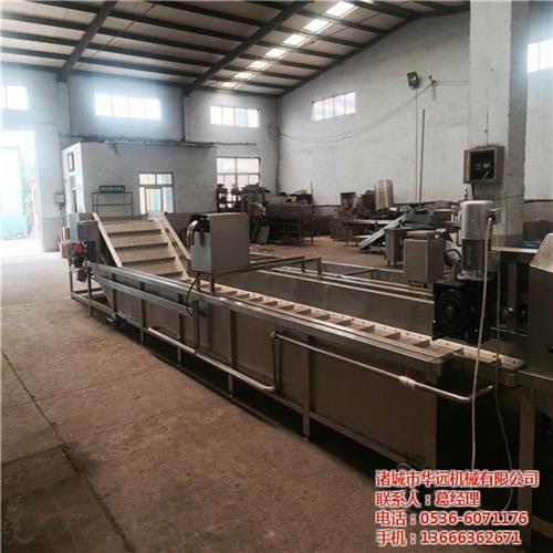 漂烫线是我公司根据客户需求及物料特性,量身设计的一款自动化设备。物料经过漂烫(汆水)可清除物料异味,收紧物料内部组织结构,使物料卤制的香味不易流失。该设备采用变频传动,输送速度稳定,实现了自动连续生产的目的,且可随时调控,加之输送网采用高强度优质不锈钢,结构牢固,承载物料重,极大的提高了生产效率。该设备造型美观、结构合理、操作方便,是您的理想选择。