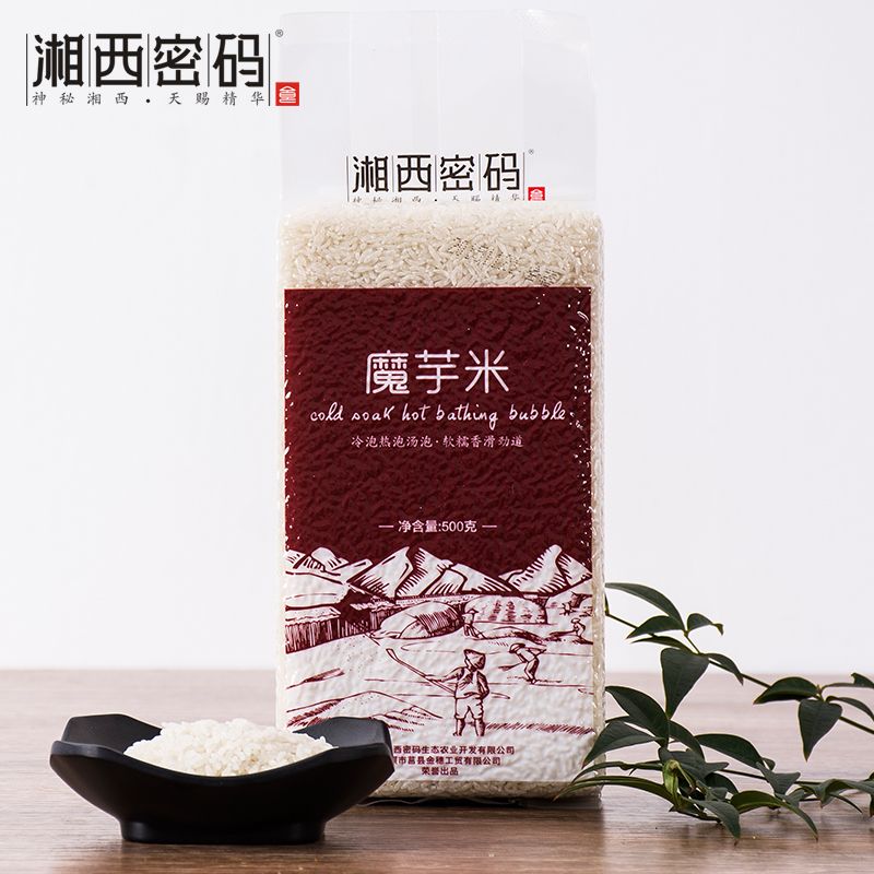 湘西密码的魔芋米,其主要原料魔芋产自北纬29°国家自然生态保护区,地处桑植西北陲,海拔2000米半辐合状群山。地理条件得天独厚,层叠屏障、雨量充沛、幽谷逸林、气候宜人,珍稀动植物资源丰富,属北亚热带山地湿润季风气候,自然成土、肥沃松软、天然绿色食品。是种植魔芋的最适宜的地区。