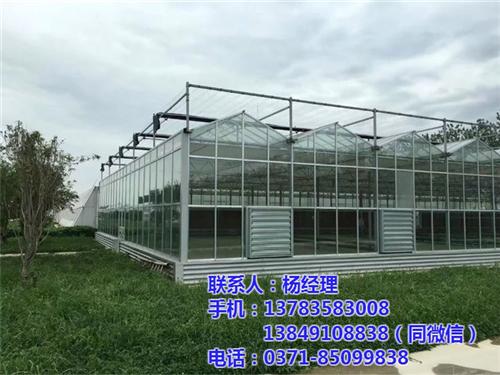 郑州欣荣温室工程有限公司生产的玻璃连栋智能温室 采用热镀锌钢结构骨架,覆盖材料一般采用4-5mm优质浮法玻璃或钢化玻璃,透 光率大于90%,也可根据客户要求选择覆盖材料,温室顶部及四周为玻璃固定专用铝型材。