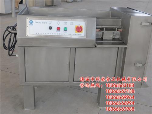 单刃切割时,全自动冻肉切丁机批发,肉料推杆作步进运动,保证切割尺寸正确