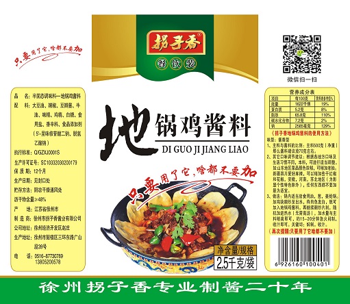 加盟地锅鸡酱料|厂家直销实惠的地锅鸡酱料 公司的地锅鸡酱料是严格按国家行业标准加工生产,卫生安全,口感优良,确保每一款产品都倾注拐子香酱业有限公司心血,凭着严格的管理制度,精干的营销队伍,在调味品行业具有良好的声誉。拐子香酱业有限公司致力于健康食品,良心食品,打造民众品质生活,提供我们具有当底料使用用途的地锅鸡酱料以及优质服务。 拐子香酱业有限公司所提供的地锅鸡酱料不仅口感好,而且在阴凉储藏的形式存储可以存放12个月之久而不影响口味。在客户大量下单后,产品是通过陆运;水运;公路运输的物流配送方式发送到客户手中,价格优惠,交货及时。拐子香酱业有限公司常年有货,货源充足,欢迎对我们产品有需求的客户致电联系,交流合作。 随着人们的生活水平和消费水平的不断提高,对于调味品的需求量越来越大,对食品品质安全的要求也越来越高。徐州市拐子香酱业有限公司主营地锅鸡酱料,自成立之初就一直严把产品质量关,并根据需求群体的要求不断对产品进行改进。公司秉承“专业、传承、品质、诚信、发展”十字方针,致力打造成行业内专业的地锅鸡酱料供应商。 目前,地锅鸡酱料经销商已遍布全国各地,无论是从包装还是口感,都得到了消费者的强烈肯定和赞扬。制作工艺机械制作售#后#维#修#地区全国售卖方式批发;零售;厂家直销发货时间双方协商的时间运费买卖双方协商产品等级优质口味微辣味;中辣味;超辣味;麻辣味价格商议 因为专注,所以专业。拐子香酱业有限公司本着“与顾客共享、与员工共荣、与时代共进”的理念,有着一流的售#后#服务,公司在食品领域主营地锅鸡酱料。为方便客户购买我们的地锅鸡酱料,我司在全国设立了众多服务点,支持现金支付;银行转账等多种快捷支付方式。欢迎新老客户前来联系洽谈,联系人李经理,电话13805200578,拐子香酱业有限公司会是您明智的选择。 继续往下走,瞧瞧更多加盟地锅鸡酱料,新品地锅鸡酱料,特色的地锅鸡酱料,地锅鸡酱料低价批发的信息 徐州市拐子香酱业有限公司始终以“绿色、营养、健康”为己任,坚持奉行“做良心食品,让消费者放心食用”。拐子香酱业有限公司还将进一步拓展经营规模,使地锅鸡酱料更多元化、高质量,满足客户的更高要求。公司位于徐州市鼓楼区三环东路广山段39号,真诚欢迎江苏省徐州市的朋友莅临参观指导。 感谢阅读本文章,我们等待您电话咨询地锅鸡酱料专卖,地锅鸡酱料招商,加盟地锅鸡酱料,徐州地锅鸡酱料加工厂,地锅鸡酱料价格信息
