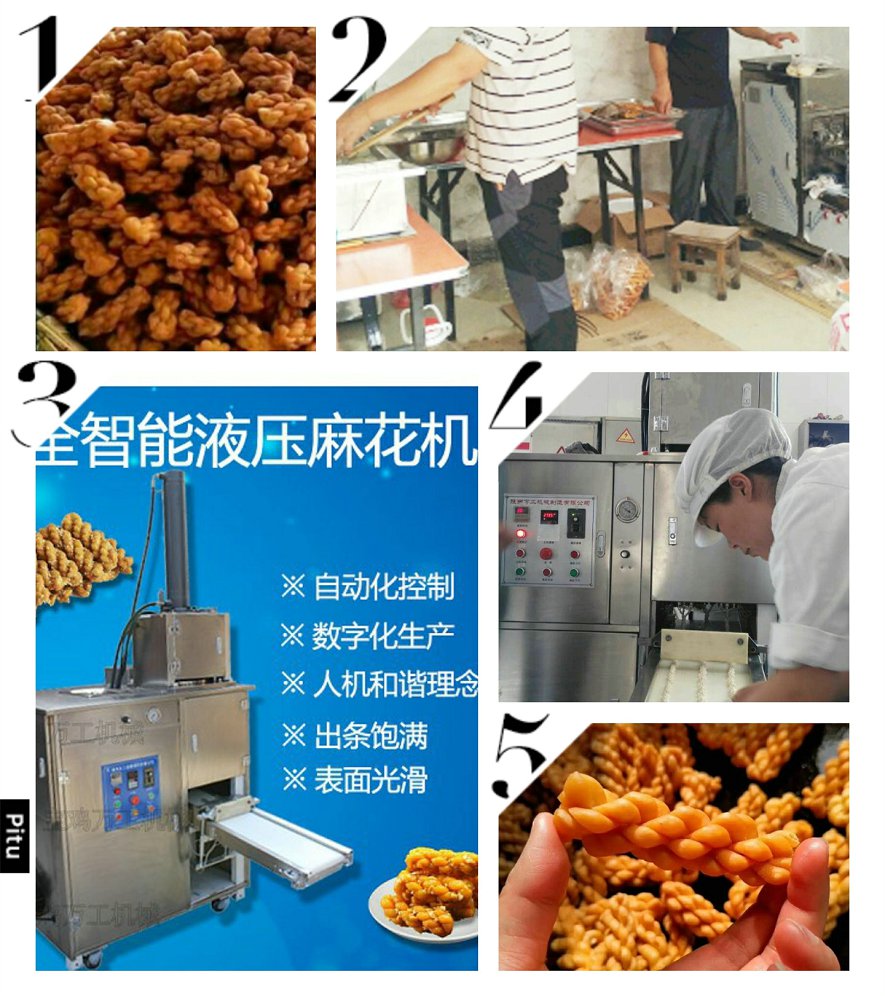 新型液压麻花机,操作简单,采用三调速结构,生产时将和好的面团放入机器内,在静压推面器的作用下经模具出条后,通过模具的旋转自动上劲挽花,再由延时切段机自由控制麻花的长短,产品花形美观漂亮,高效节能、安全卫生、无噪音无污染,极大的提供高了生产效率和产品质量。