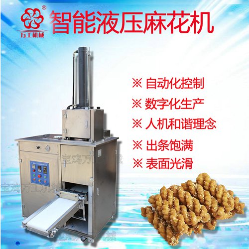 新型液压麻花机,操作简单,采用三调速结构,生产时将和好的面团放入机器内,在静压推面器的作用下经模具出条后,通过模具的旋转自动上劲挽花,再由延时切段机自由控制麻花的长短,产品花形美观漂亮,高效节能、安全卫生、无噪音无污染,极大的提供高了生产效率和产品质量。