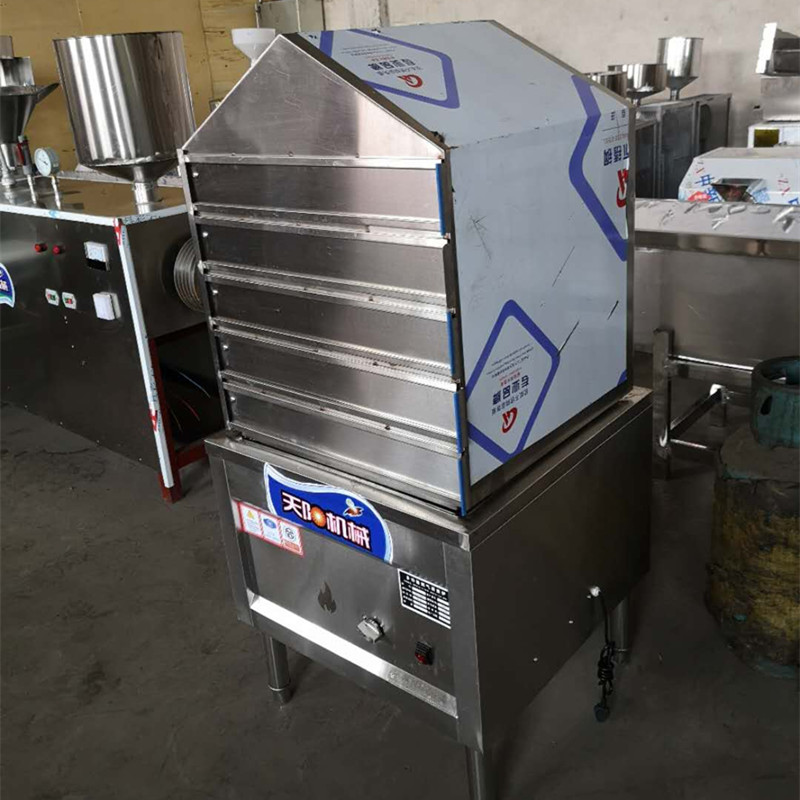 多功能蒸汽凉皮机结构新颖美观,由燃气蒸汽炉和抽屉式蒸塔组成,仿手工蒸汽蒸制熟化成型工艺,可生产凉皮、米皮、米粉、面皮、大拉皮等多种产品。多功能蒸汽凉皮采用燃气蒸汽炉为热源,节能环保,脉冲点火,一分钟出蒸汽,三分钟烧开锅,自动补水,防止干锅。抽屉式蒸塔,五层蒸盘循环使用,调好的面浆或粉浆加入圆形蒸盘直接放入蒸塔中,,出机即为熟品。