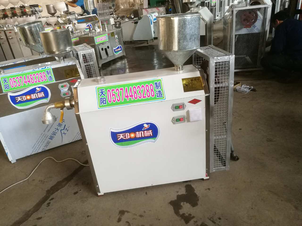 酿皮也叫面皮、凉皮,是著名的地方风味小吃。酿皮是面粉制的食品,色泽晶莹黄亮,半透明如玉,成筷子粗细的长条状食品,再加上酱油、香醋、蒜汁、辣椒油、精盐等调料即可食用。酿皮子价廉物美,其味酸辣凉爽,柔韧可口,是一种大众化的地方风味食品。在大街小巷内随处可见。这种凉吃的食品,在夏季炎热的天气里,很受人们的欢迎。的确,产麦地区的面食精品酿皮子是全城大众食品,形如软玉,半透明又颤抖悠长的形象加上多彩的调料,外形绝妙稀奇,食者就地而吃津津有味,方便快捷。天阳酿皮机结构紧凑,操作简便,体积小、重量轻、性能稳定,使用电源,采用电热水煮自动控温装置,避免了传统熬浆易糊锅的缺点,可生产出酿皮、东北大拉皮、凉粉、米豆腐、年糕、酸浆米线、玉米叉子、粉条粉丝等产品,薄筋光亮、滑溜爽口、极具民间风味。