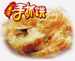 手抓饼原名葱抓饼,起源台湾。新鲜出炉后的手抓饼,千层百叠,层如薄纸,用手抓之,面丝千连,其外层金黄酥脆,内层柔软白嫩,一股葱油与面筋的香味扑鼻而来,让每个人来不及等待,抓起就吃。