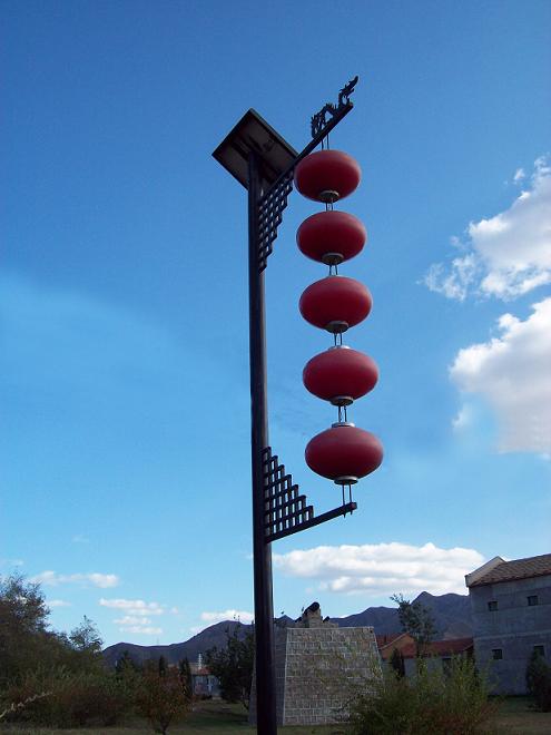 太阳能景观灯以太阳能作为电能供给用来提供夜间道路照明,采用高光效照明光源设计,光控加时控,具有亮度高、安装简便、工作稳定可靠、不敷设电缆、不消耗常规能源、使用寿命长等优点,属于当今社会大力提倡利用的绿色能源产品。太阳能景观灯自身具有较高的观赏性,还强调艺术灯的景观与景区历史文化、周围环境的协调统一,利用不同的造型、相异的光色与亮度来造景。