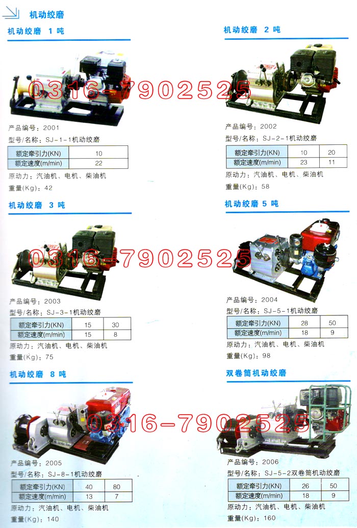 机动绞磨三、 用途:ST-3T 和ST-5T型绞磨机是架设空中高压输电线路及铺设地下电缆的施工机具,能在各种复杂条件下顺利、方便地进行组立革塔、架设导(地)线等起重、牵引。经实验和现场实际作用证明,具有结合理、体积小、重量轻、功力大、操作灵活、搬运方便等优点,深受广大电力作业者的欢迎。