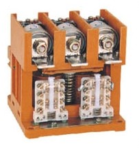 触器由真空开关管、绝缘架,动臂、磁路支撑架、电磁操作机构及整流装置组成。电磁操作机构由铁心、线圈、磁极板、衔铁板、转轴、动臂等组成。