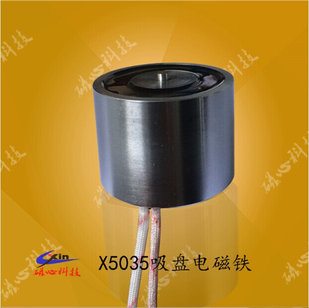 此款X5035吸盘电磁铁以力量大,寿命长为特点。产品吸合面封胶处理,所以产品可防水,同样配有吸合板,装在门的两个部位,门关上时产品和吸板吸合,达到门上锁的作用。