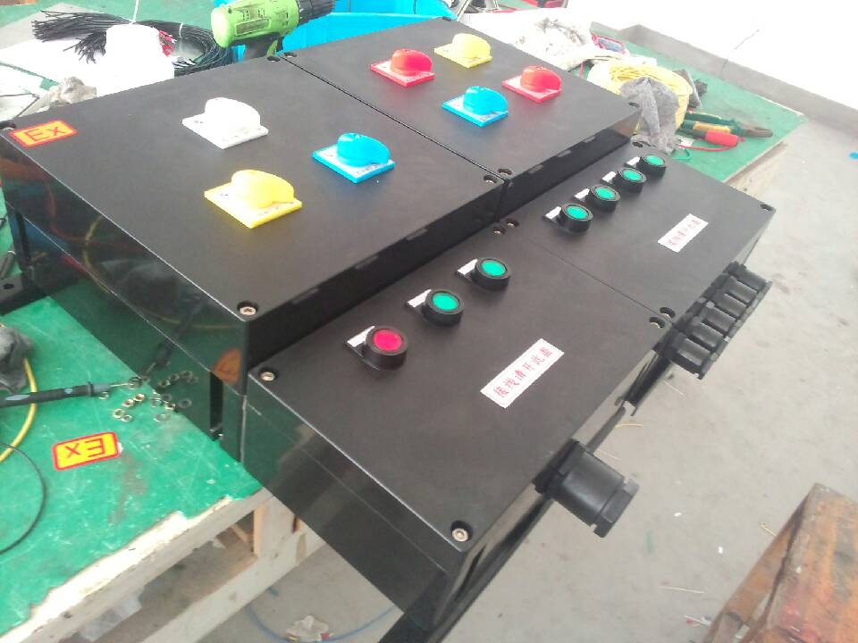B、非标配电箱:外壳采用不锈钢板焊接成型,表面抛光。分主腔和接线腔,均采用隔爆型结构,内可选装高分断断路器、交流接触器、热继电器、控制按钮、信号灯等元件,通过操作壳盖上的手柄实现分合,动作性能可靠,并设有指示灯。进出线采用钢管或电缆布线均可,进出线口方向及内部元件可由用户要求而定。