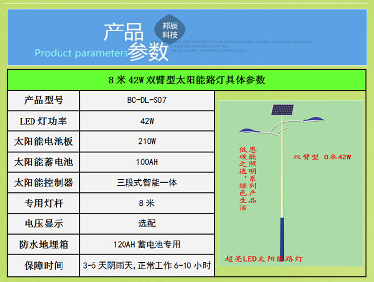 双臂型8米42W恩能太阳能路灯-广西邦辰科技恩能光伏照明系列