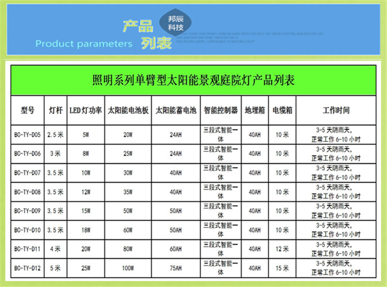 单头3.5米18W恩能太阳能景观庭院灯广西邦辰科技太阳能光伏照明系列