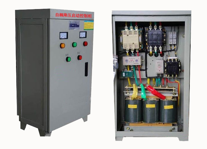 2.本产品为箱式防护结构,由自耦变压器、交流接触器、时间继电器、热继电器或综合保护器、中间继电器、万能转换开关等元件组成。对于75KW及以下的产品,采用自动控制的方式,90KW及以上的产品,均具有手动和自动两种控制方式,由万能转换开关进行切换。