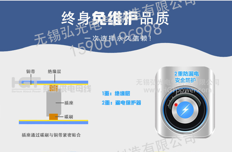 提供动力的移动供电插座(220V&380V)可在贯通的整条无锡弘光母线槽内滑动至任意位置工供电并且可在任意位置增加或减少供电点。