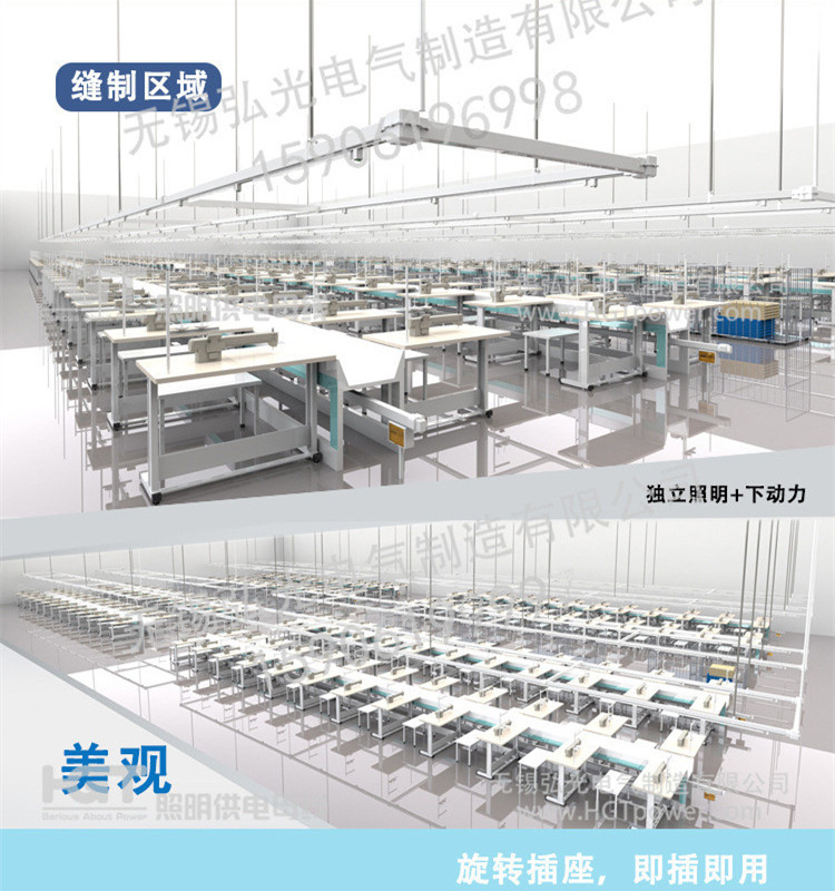 提供动力的移动供电插座(220V&380V)可在贯通的整条无锡弘光母线槽内滑动至任意位置工供电并且可在任意位置增加或减少供电点。