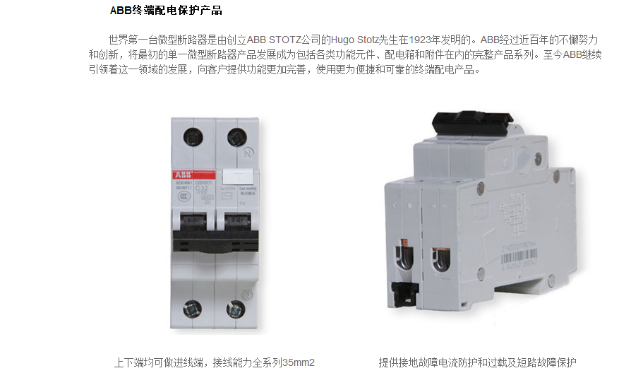 ABB公司提供多个系列的限流型微型断路器,适用于住宅、商业及一般工业用途的终端配电线路的过电流及短路保护。产品包括:S200、SN201、S260、S280、S800等多个系列。