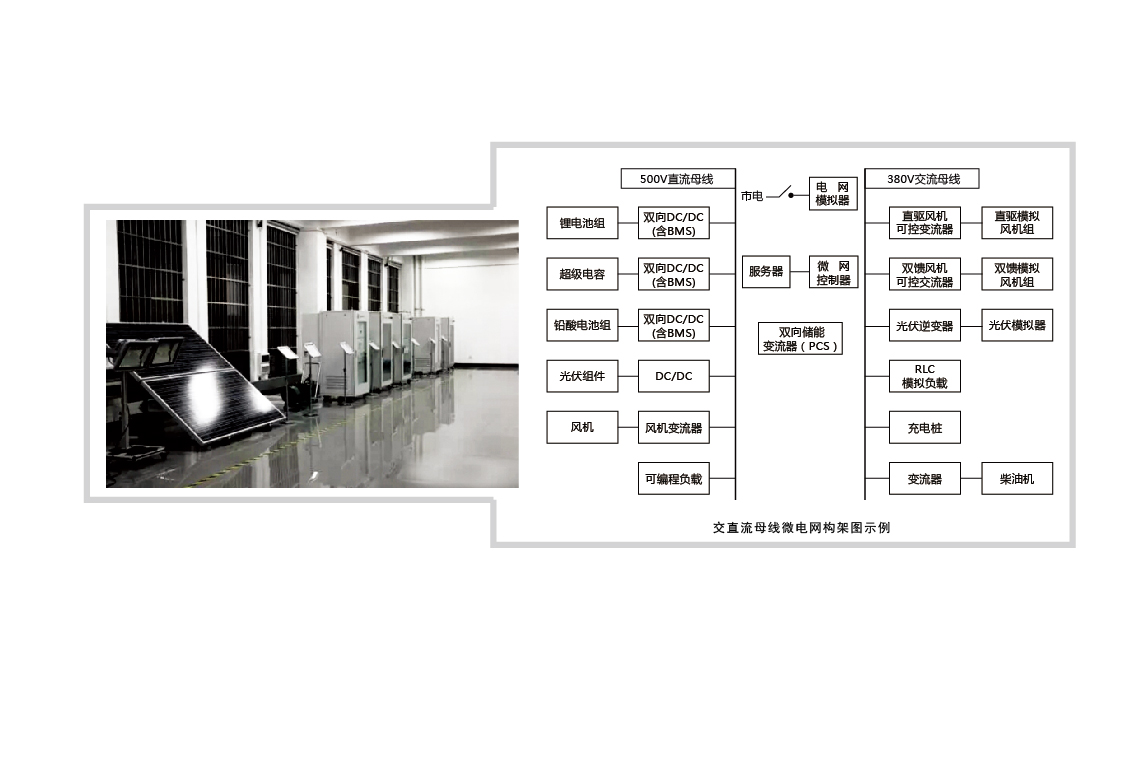 系统中既包含380V交流母线,又具备直流母线,两种母线混合在一起,可提供更多的研究实验和更灵活的能量管理策略。